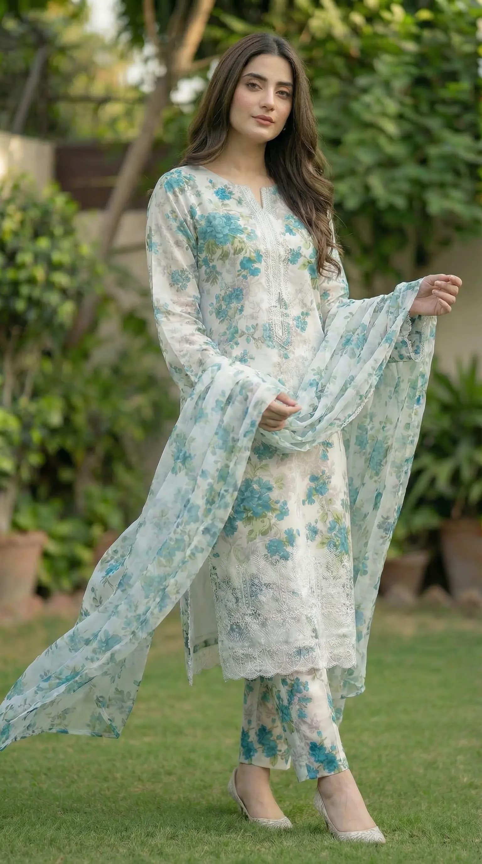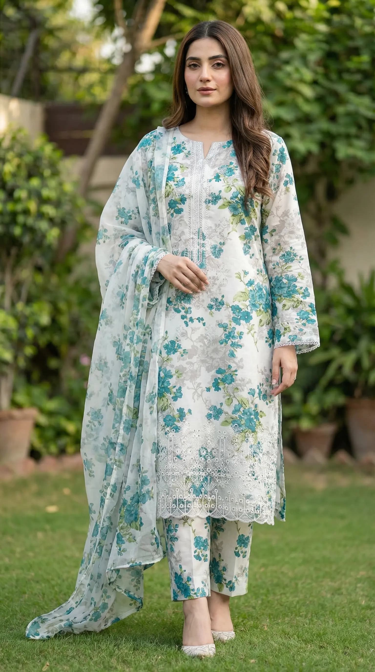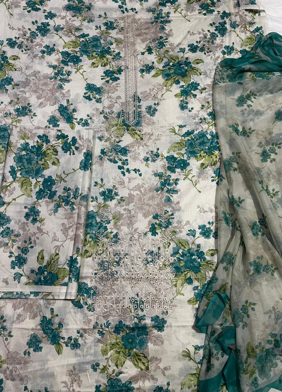 Fabric & Print Details Shirt: Floral printed lawn shirt Trouser: Printed lawn trouser Dupatta: Chiffon dupatta Suit Type: 3 Piece Unstitched