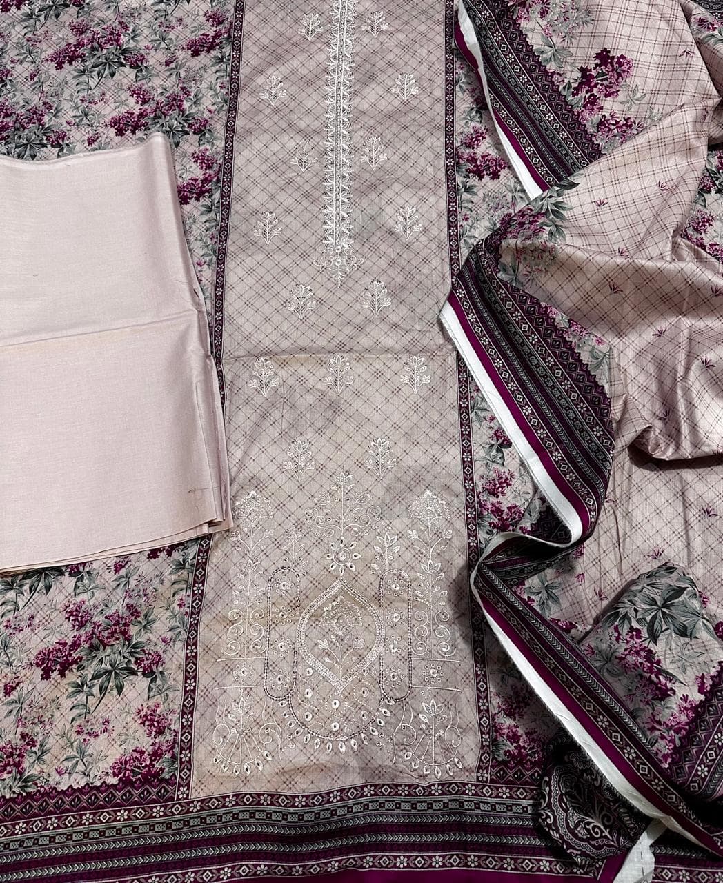 Patches & Details Printed lawn shirt with fine embroidery Soft, breathable premium lawn fabric Plain lawn trouser for a clean, balanced look Lawn dupatta for a coordinated finish Unstitched 3 piece women suit Ideal for Pakistani summer wear