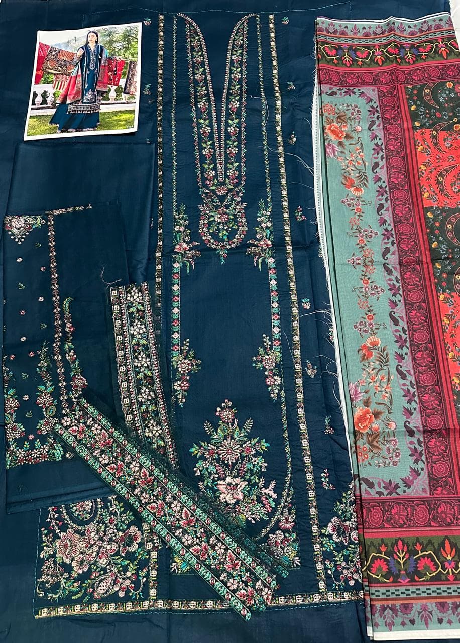 Premium 3 Piece Lawn Suit with Full Embroidered Shirt & Sleeve Patches