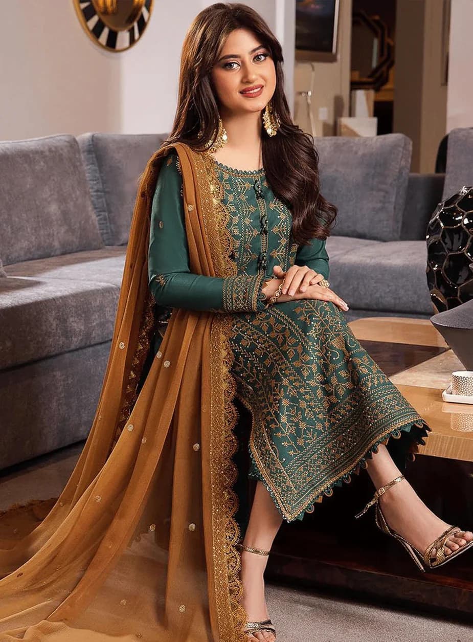 34% offThis premium quality 3 piece embroidered lawn suit is crafted on breathable lawn fabric with elegant embroidery, making it perfect for summer wear and semi-formal occasions.