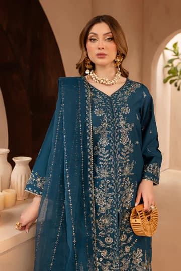 36% offThis premium quality 3 piece embroidered lawn suit is crafted from breathable 100% lawn fabric, featuring rich embroidery for a graceful and elegant look. Ideal for summer wear and semi-formal occasions.