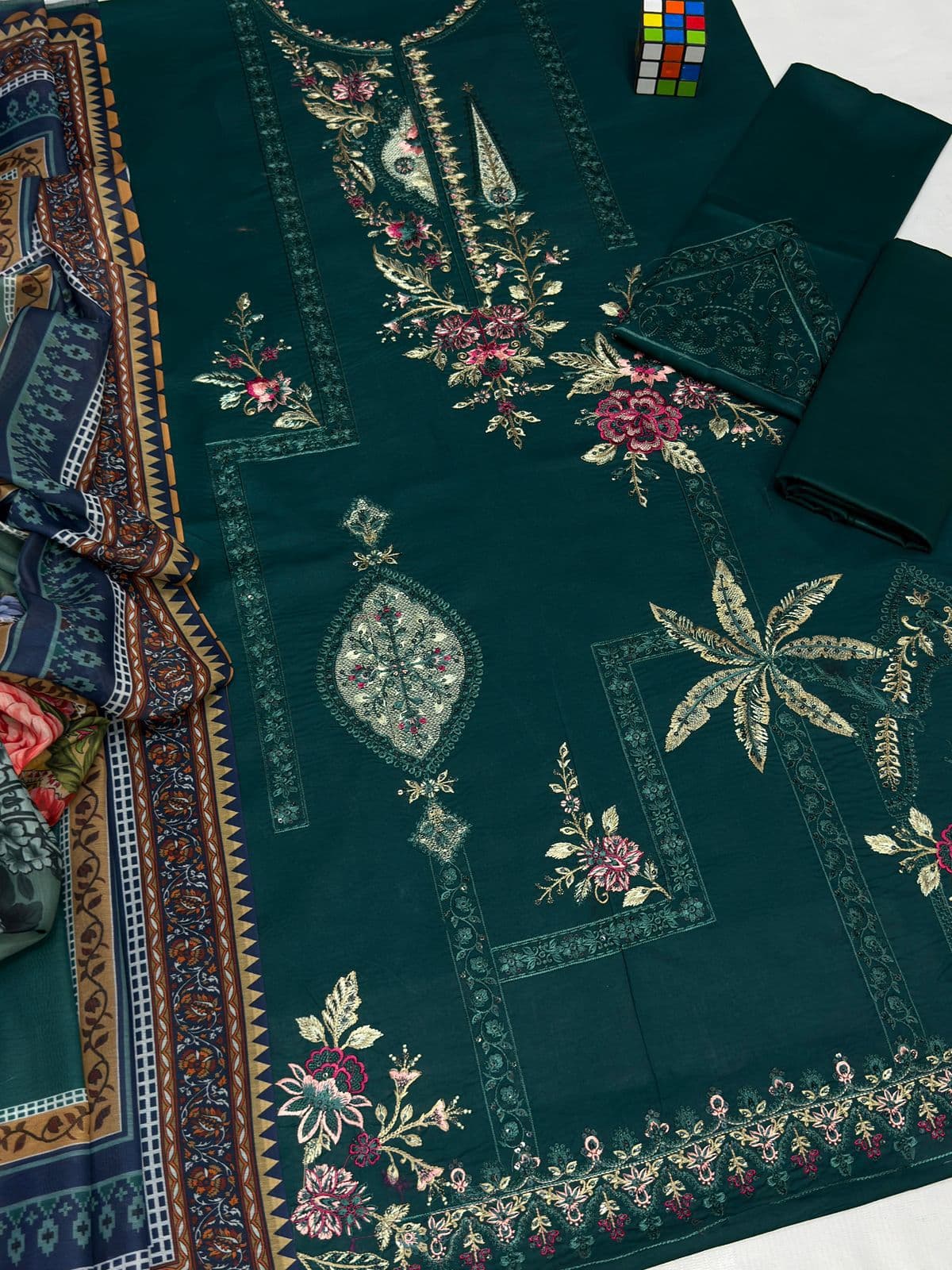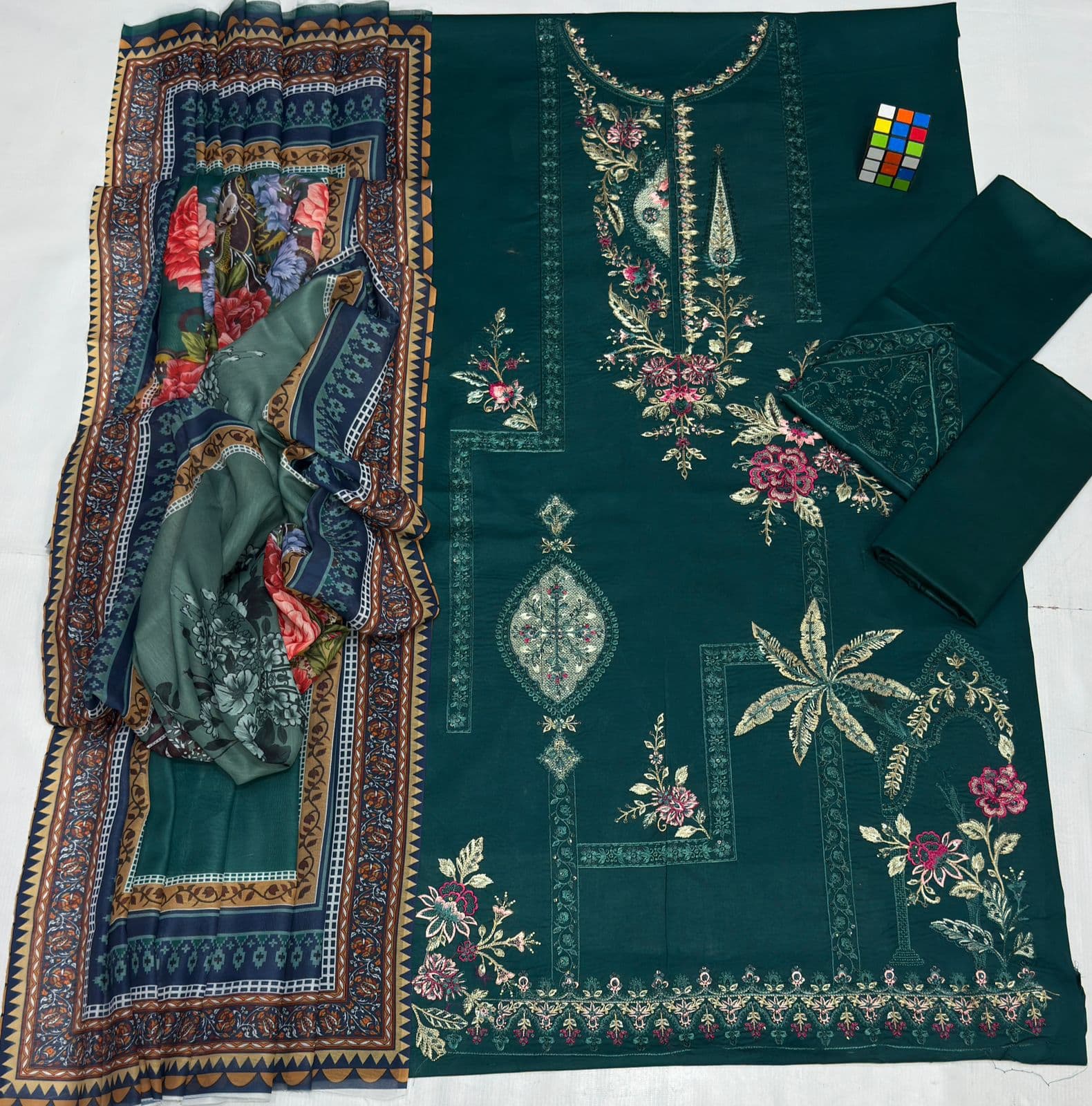 Premium Embroidered 3 Piece Lawn Suit with Printed Chiffon Dupatta