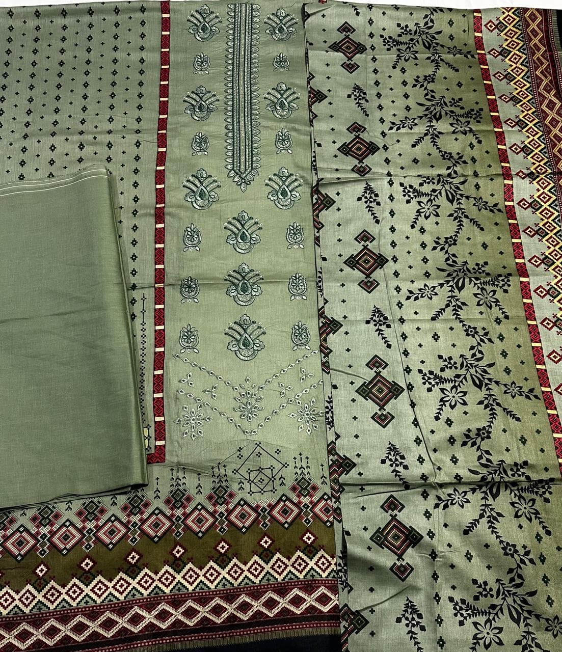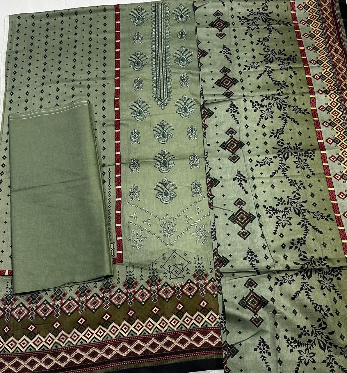 Printed Lawn 3 Piece Suit with Plain Trouser, Embroidered Shirt & Lawn Dupatta