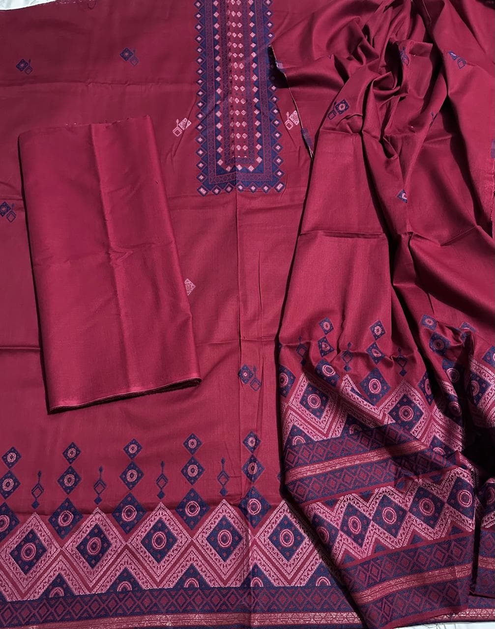 Fabric & Details: Fabric: Jacquard Lawn colour:Maroon Dress Type: 3 Piece Unstitched Texture: Premium woven jacquard design Season: Summer Wear