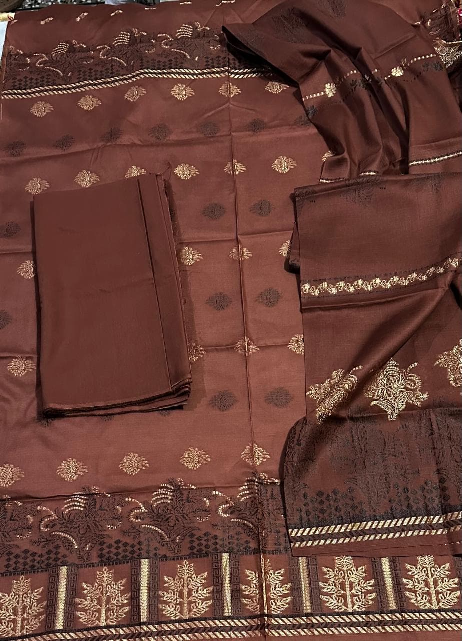 Fabric & Details Fabric: Jacquard Lawn colour: rust brown Dress Type: 3 Piece Unstitched Texture: Premium woven jacquard design Season: Summer Wear