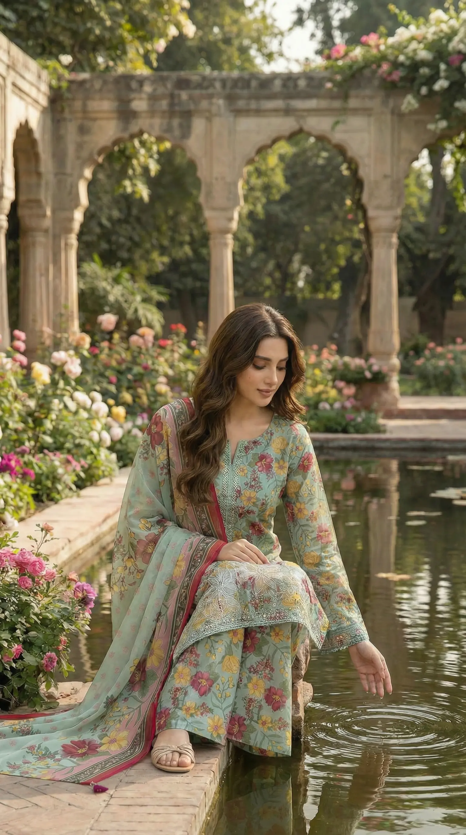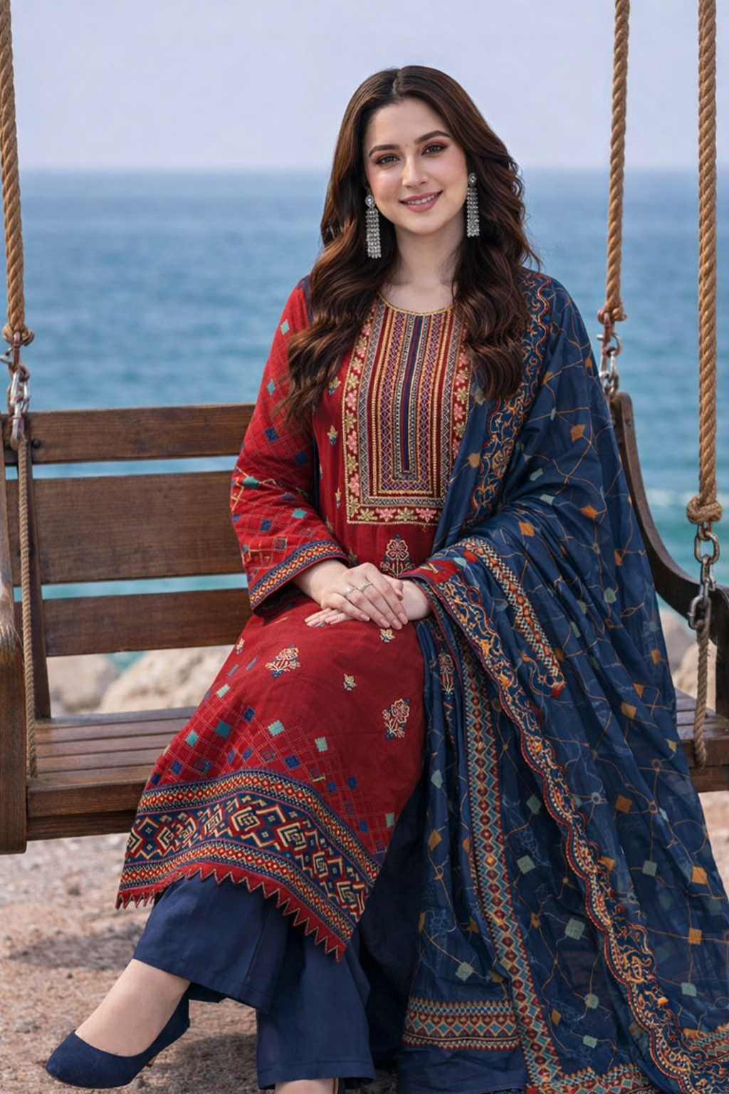 Printed Lawn 3 Piece Suit with Embroidered Shirt & Chiffon Dupatta