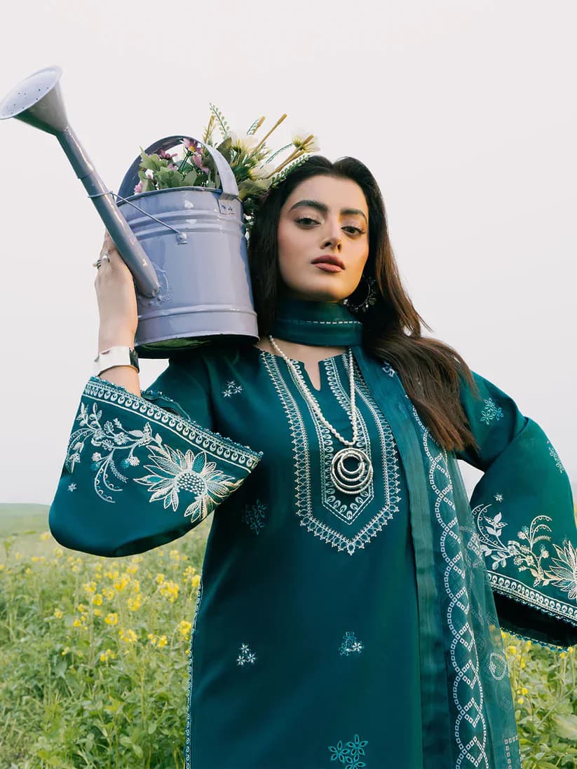 Patches & Details Finely embroidered shirt Fully embroidered sleeves Printed dupatta for a stylish contrast Plain trouser for a balanced finish Unstitched 3 piece women suit Ideal for casual & semi-formal occasions