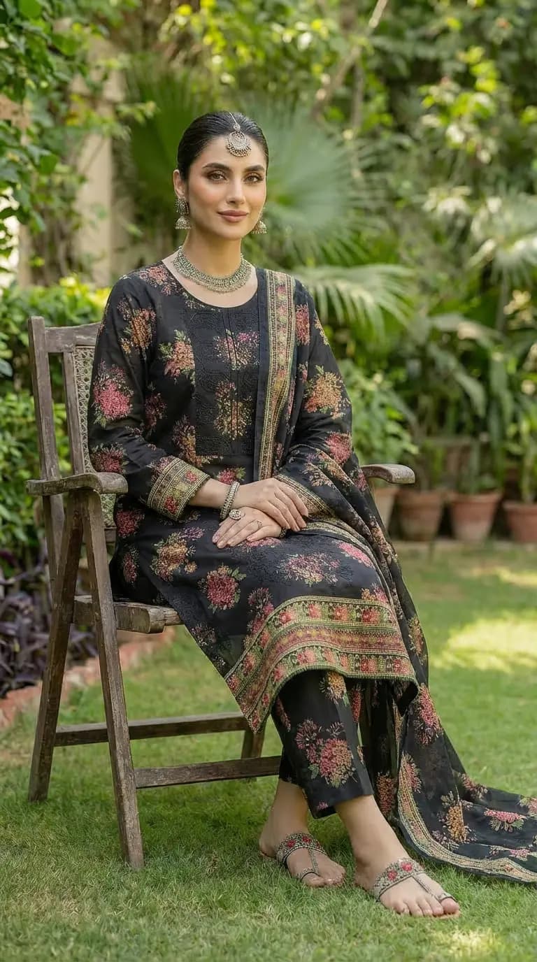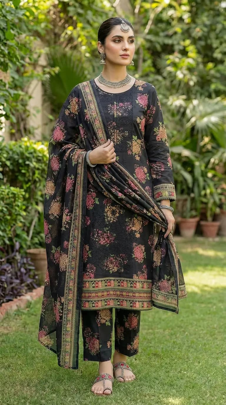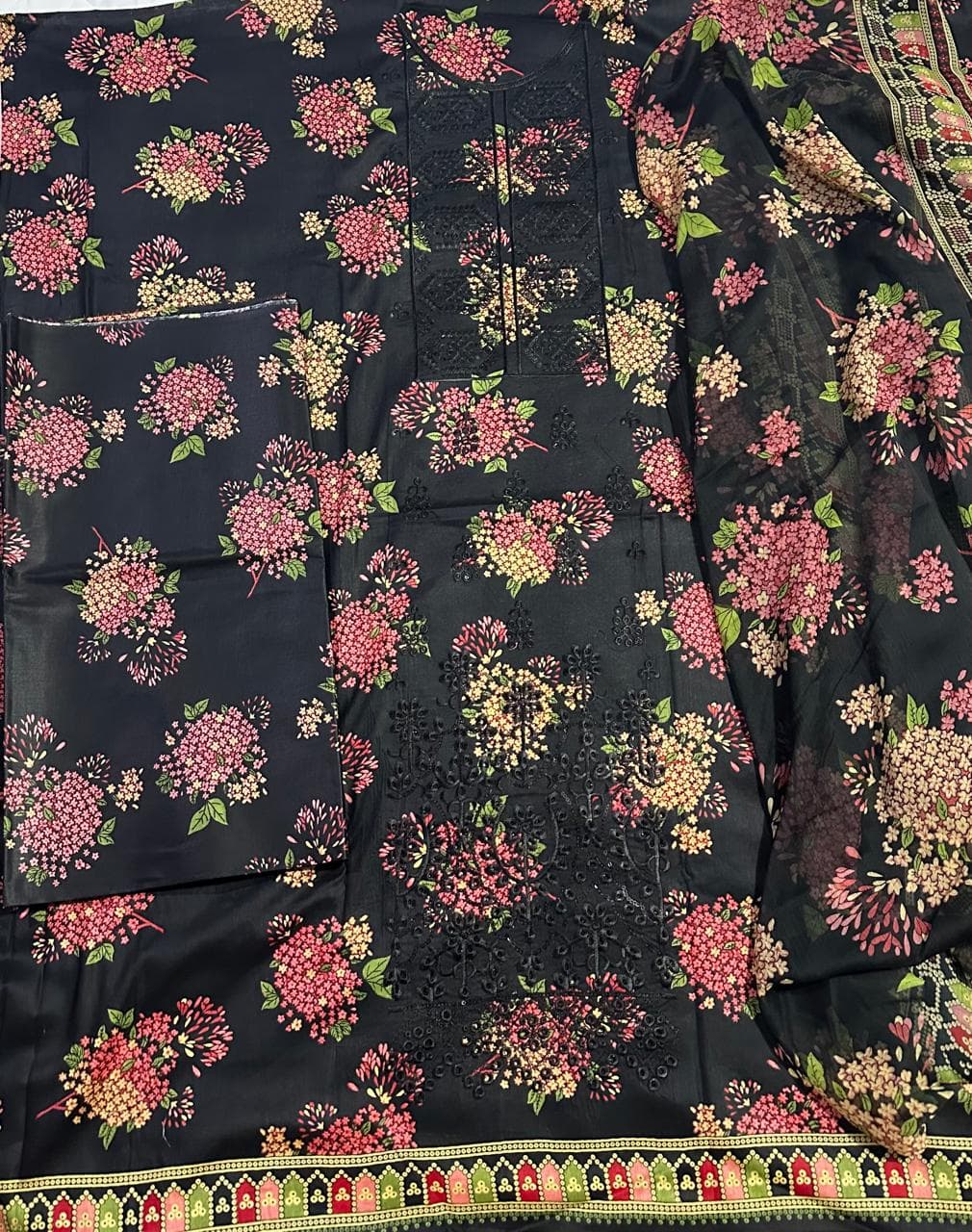 34% offThis printed lawn 3 piece suit is designed for everyday comfort, featuring a lightly embroidered shirt with breathable lawn fabric—perfect for daily summer wear.