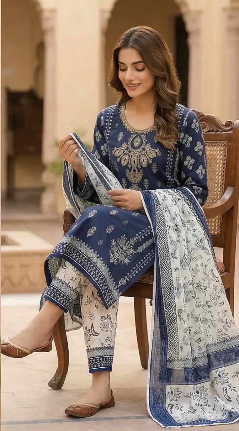 Patches & Details Printed lawn shirt with fine embroidery Soft, breathable premium lawn fabric Printed lawn trouser for a matching finish Lawn dupatta for a complete summer look Unstitched 3 piece women suit Ideal for Pakistani summer wear